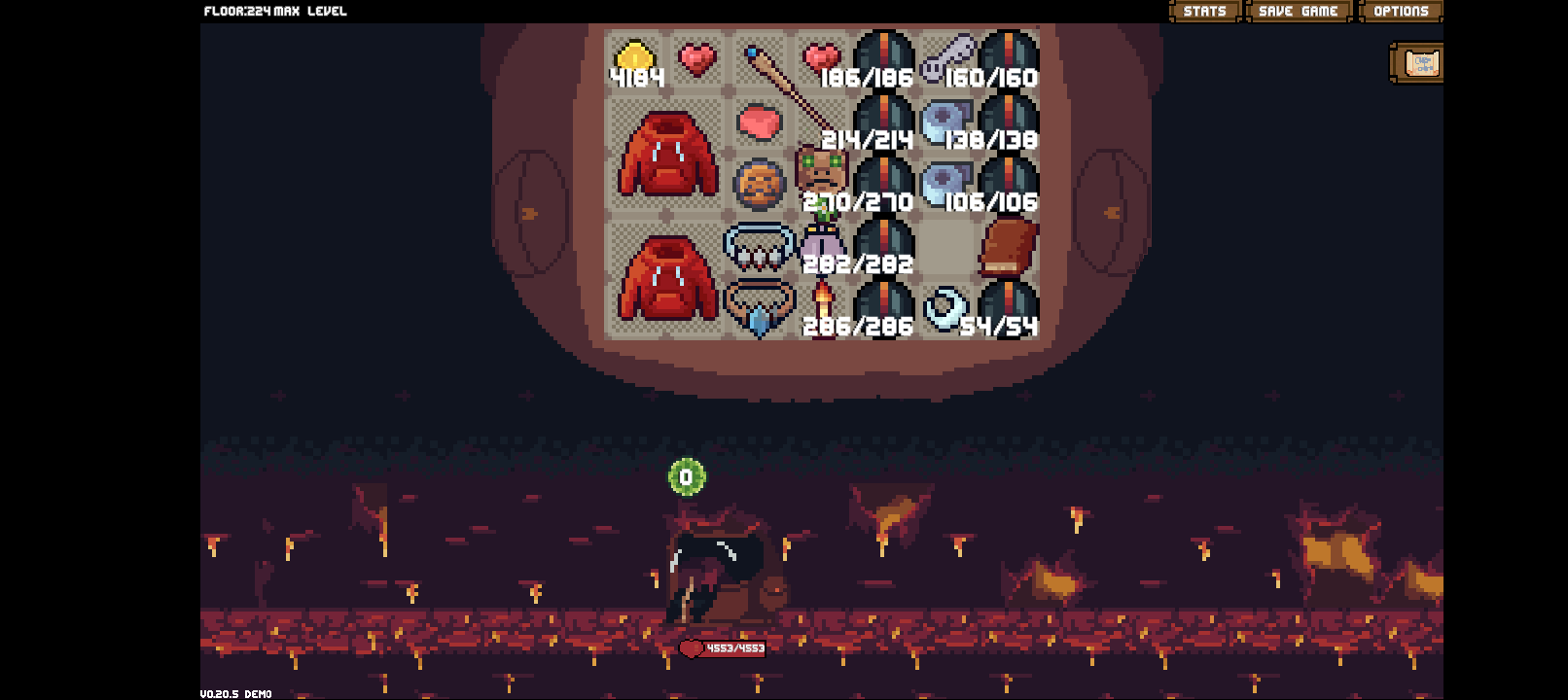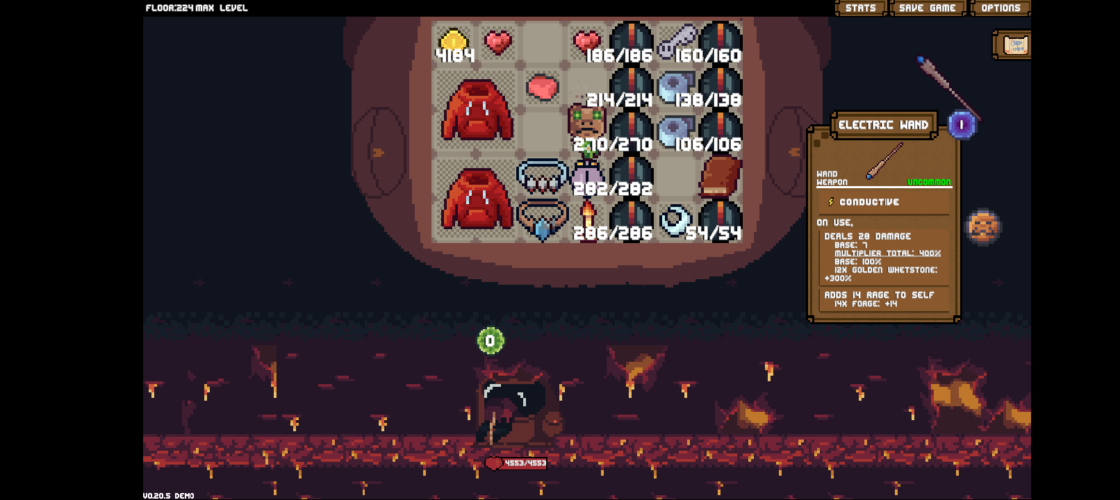This is a pretty sturdy beginner build for all the way past the Magma Core boss and beyond, putting out 54 damage each shot with some mild health adjustments. It doesn't seem like a lot, but it does pack a punch with energy consumables stacked on top. But a key feature would be to make sure you stack on potions or consumables that remove all status effects from enemies to prevent rage and spikes. This is not a HIGH TIER build but it is good for beginner stages.